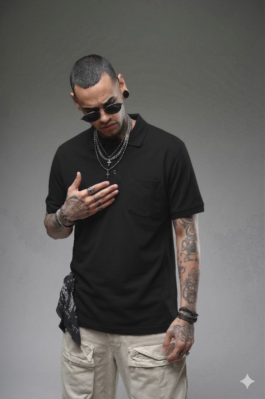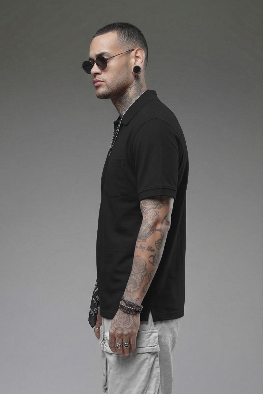 Κλασική ανδρική polo μπλούζα σε μαύρο χρώμα με γιακά και διακριτική τσέπη στο στήθος. Ιδανική για καθημερινά casual looks με minimal αισθητική και άνετη εφαρμογή.