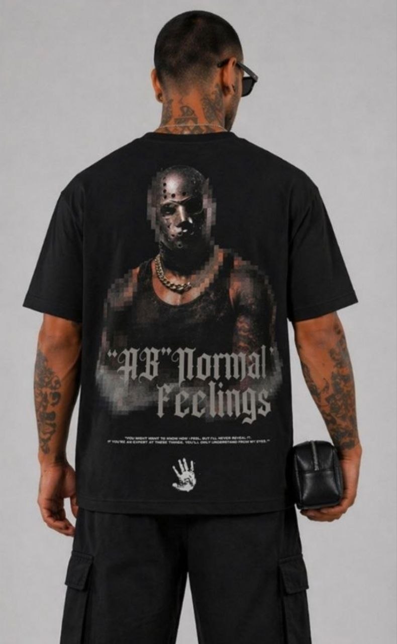 Μαύρη ανδρική oversized μπλούζα με μεγάλο graphic τύπωμα “Abnormal Feelings” στην πλάτη. Ένα statement streetwear κομμάτι με dark urban αισθητική.