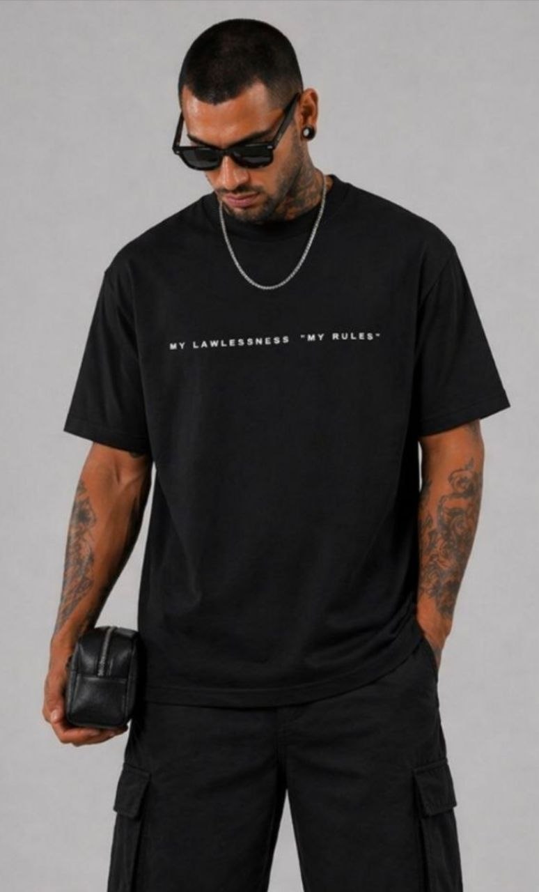 Ανδρική κοντομάνικη μπλούζα σε μαύρη απόχρωση, ιδανική για streetwear εμφανίσεις με έντονο και ξεχωριστό χαρακτήρα. Η oversized εφαρμογή προσφέρει άνεση και χαλαρή γραμμή, κάνοντάς τη ιδανική για καθημερινά urban looks.