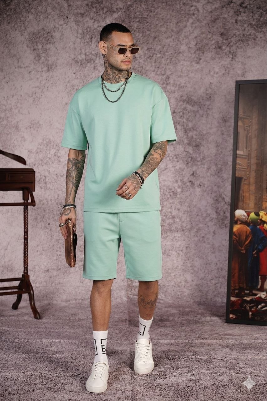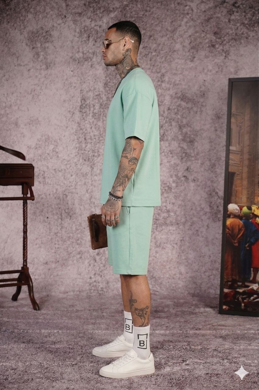 • Ανδρικό Σετ T-Shirt & Βερμούδα Oversized σε Mint Απόχρωση