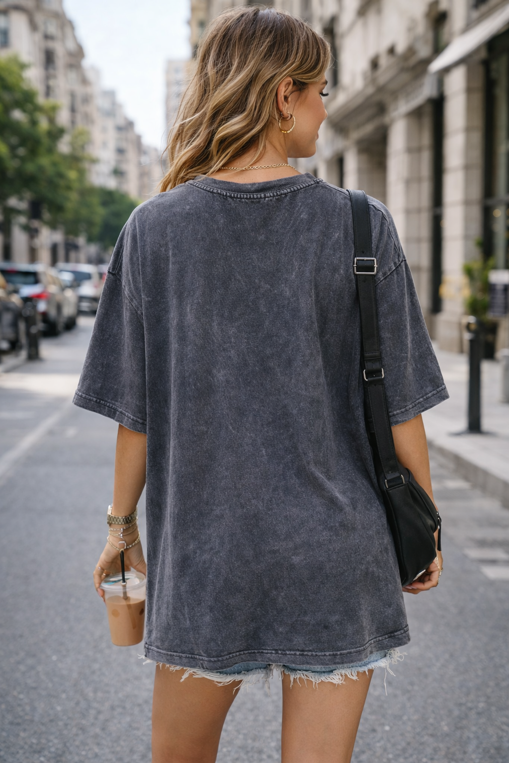 Oversized T-shirt σε washed μαύρο με εντυπωσιακό graphic print μπροστά και minimal καθαρό πίσω μέρος. Ιδανικό για street style εμφανίσεις.